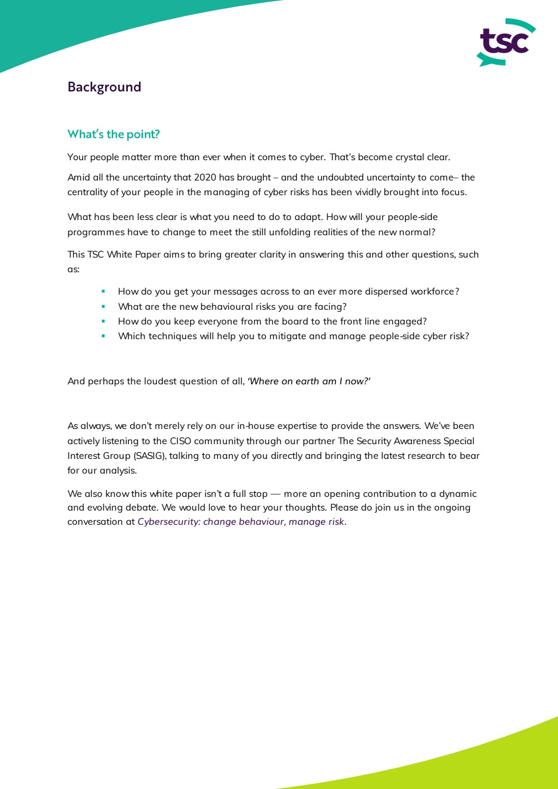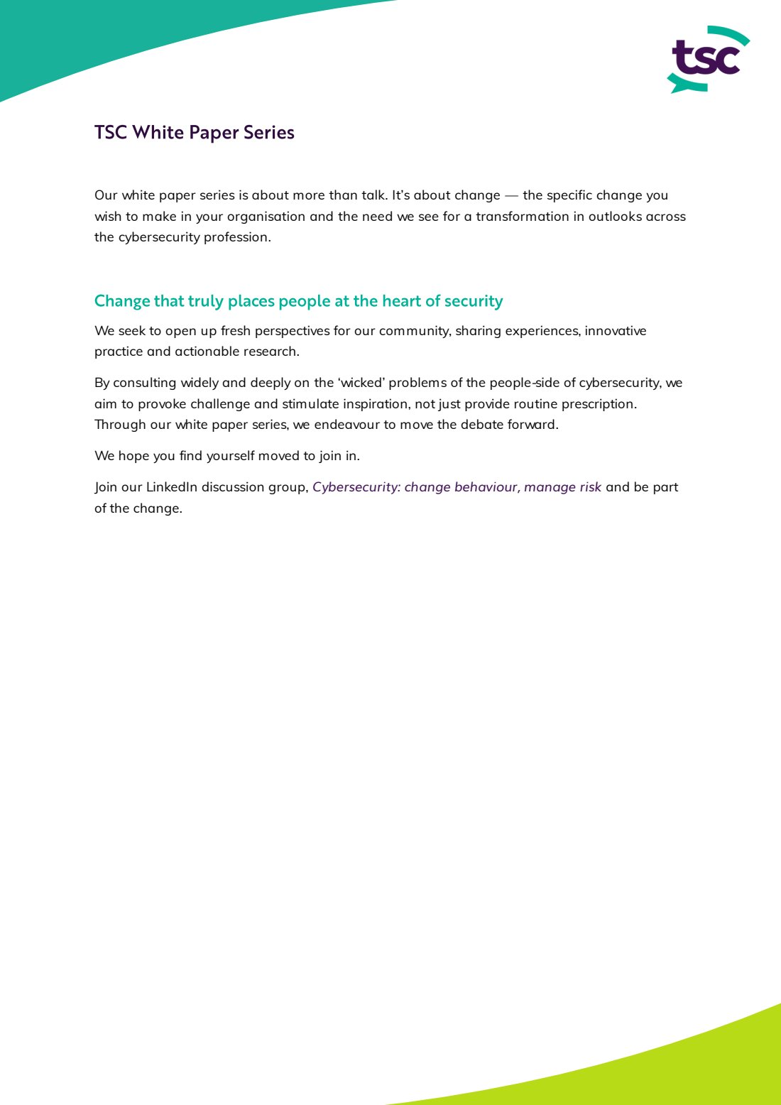 Educational piece aimed at Chief Information Security Officers. Focuses on how to approach changing an organisation’s security culture and the risks to consider.